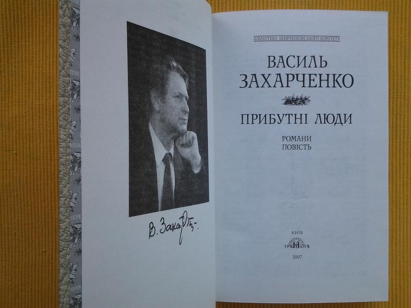 А в 1995 році Василь Захарченко став лауреатом Шевченківської премії за роман «Прибутні люди». Тема Голодомору, яка глибоко хвилювала його, вилилася у кількох книгах. «Прибутні люди» – про голод 1947 року. Прибутніми називали тих, хто переїздив (прибував) з рідних місць, де страждали від голоду, у багатші краї, аби вижити. Так герої роману Василя Захарченка переїжджають із центральної України в західну («западну»), де люди ще були господарями на своїй землі, їх не встигли загнати до колгоспів.