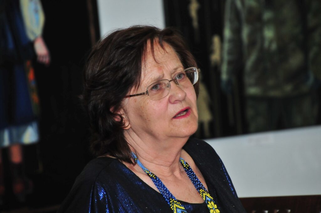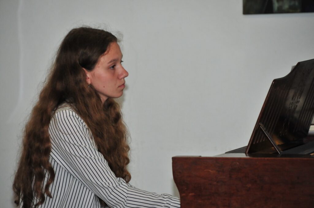 У другій половині концерту Ольга Хабло виконала твори український авторів. Такою ж глибоко національною ідентичністю проникнутий і твір визначного українського композитора Г.Саська «Софія Київська». Геннадій Сасько добре відомий музичному колу кам`янчан. Він неодноразово приїздив у Кам`янку, очолював журі дитячого музичного конкурсу, проводив творчі зустрічі в нашому місті. Перелив дзвонів Софії Київської, що відтворили віртуозні руки піаністки, перенесли нас в стародавній Київ, на його пагорби, до українських християнських святинь, молитви в яких зараз повсякденно звернені до Бога в проханні довгожданого миру для України і її народу. Масштабну картину російсько-української війни слухачі почули в панорамному творі відомого харківського композитора Бориса Севастьянова «Українська фантазія» Твір був написаний митцем ще в 2006році. Залишається тільки дивуватися, що про криваві події сьогодення Господь попереджав нас навіть мовою музики. У фіналі «Української фантазії» звучать мажорні акорди перемоги, нашої Української Перемоги, яка запрограмована десь на небесах. А на завершення своєї творчої зустрічі пані Ольга подарувала присутнім серед гостей представникам ЗСУ джазову композицію композитора О. Саранського «Цвіте терен».