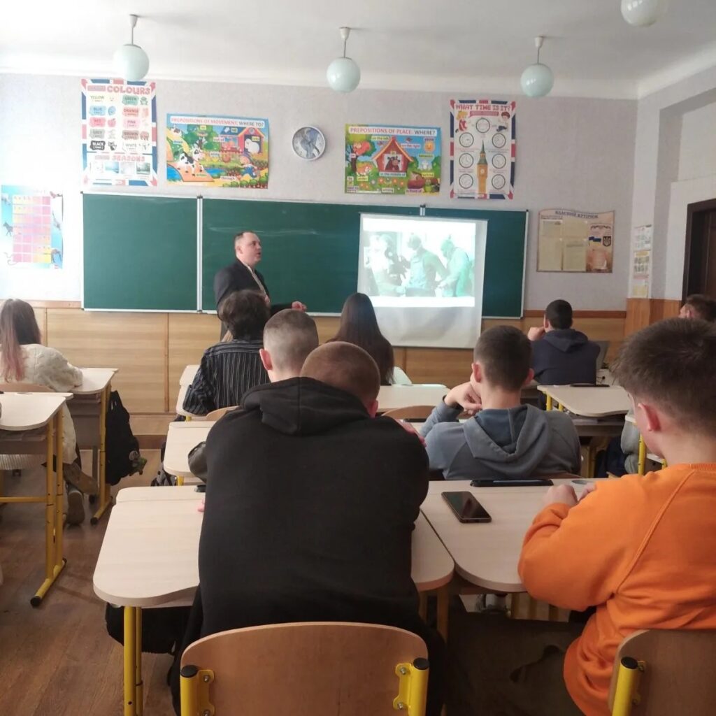 Продовжується просвітницький марафон про аварію на Чорнобильській АЕС 1986 р. та процес ліквідації її наслідків. Черговими слухачами тематичного заняття стали учні 9-их класів Кам’янської ЗЗОШ #2. Ведучий заходу (О.Мушта) розповів школярам про передумови, причини та наслідки техногенної катастрофи і висвітлив історію перебування на АЕС та специфіку роботи кам’янчан-ліквідаторів: В.Гапченка, А.Онопи та О.Грабового.