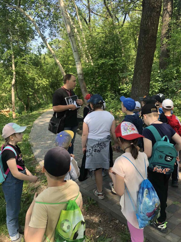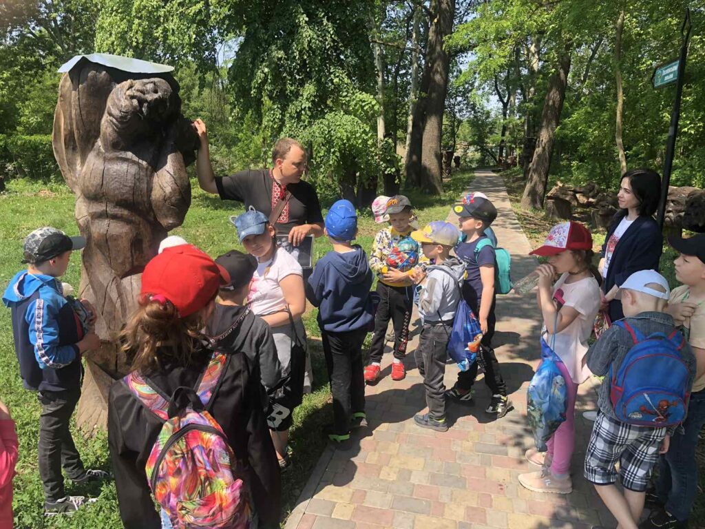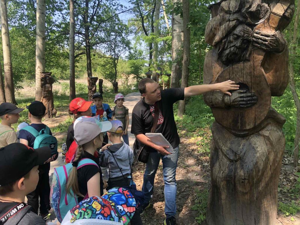Поліпшення погоди та завершення навчального року сприяє активізації пізнавально-просвітницької діяльності. Як наслідок, до музеїв та різних туристичних локацій заповідника все частіше приходять колективи учнівської молоді. Цього разу, до заповідника завітала малеча із 2-го класу Кам’янської міської ЗОШ № 2. Вони коротко прослухали історію утворення і еволюції Кам’янського парку поч. ХІХ ст. та оглянули алею дерев’яних скульптур Бориса Плаксія. Автор і ведучий – Олександр Мушта.