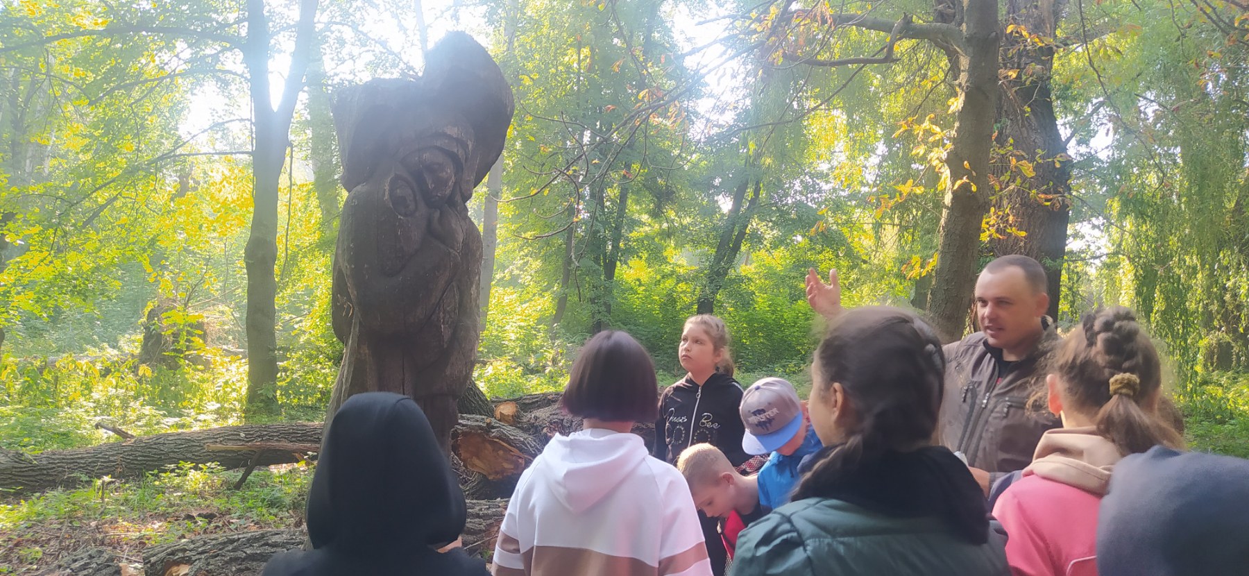 Діти разом з ведучим пройшлись вздовж алеї парку та оглянули всі скульптури. На жаль, від часу та природних впливів ці пам’ятки зазнали великих змін. Скульптури потребують оновлення і надіємось вже в недалекому майбутньому вони будуть реставровані, як і сама територія парку. Зараз же, запрошуємо всіх охочих на екскурсійний огляд скульптур. Однозначно, ви почуєте багато цікавого.