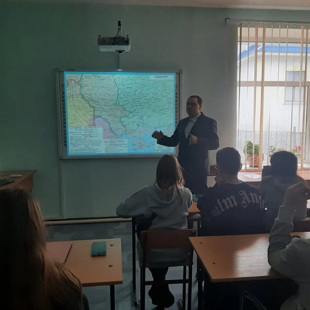 Працівники історико-культурного заповідника продовжують проводити краєзнавчу та просвітницьку роботу в різних навчальних закладах. Цього разу в приміщенні міського еколого-економічного ліцею “Камелія” школярам була прочитана лекція про особливості розвитку Кам’янського краю в період російського імперського панування ХІХ – поч. ХХ ст. Автор і ведучий заходу – Олександр Мушта.