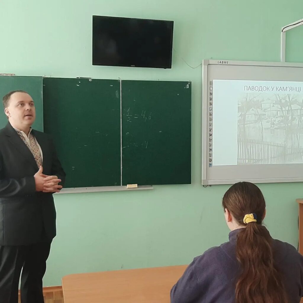Для учнів 8-го, 9-го та 11-го класів Кам’янського еколого-економічного ліцею було організовано проведення цільового, по спеціалізації закладу, тематичного заходу. Ліцеїстам розповіли про причини, хід та наслідки великого паводку у Кам’янці навесні 1980-го р. Автор і ведучий – завідувач меморіальним музеєм Зелений будиночок, краєзнавець Олександр Мушта.