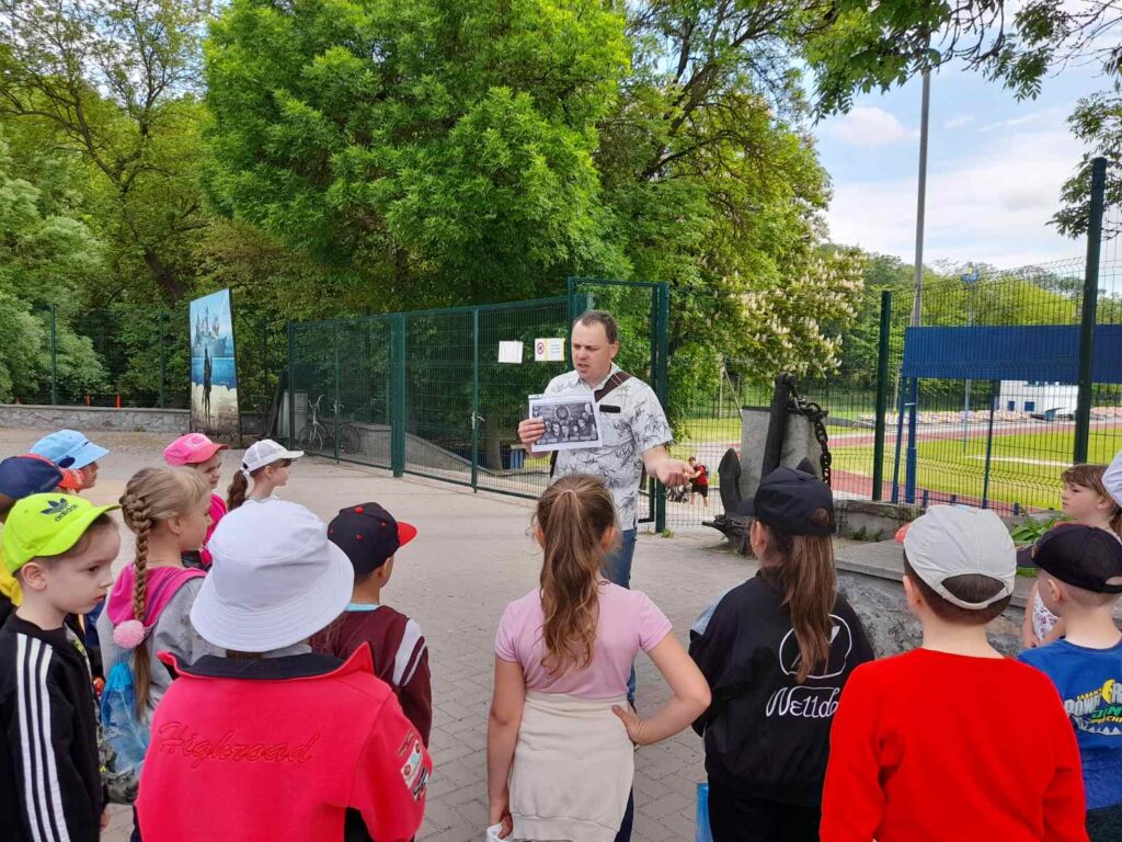 Біля стадіону та в парку школярам було розказано про національно-патріотичний рух на Кам’янщині поч. 1990-х рр. Діти коротко дізнались про діяльність місцевої політичної організації “Народний Рух України”, його акції та просвітницьку роботу.