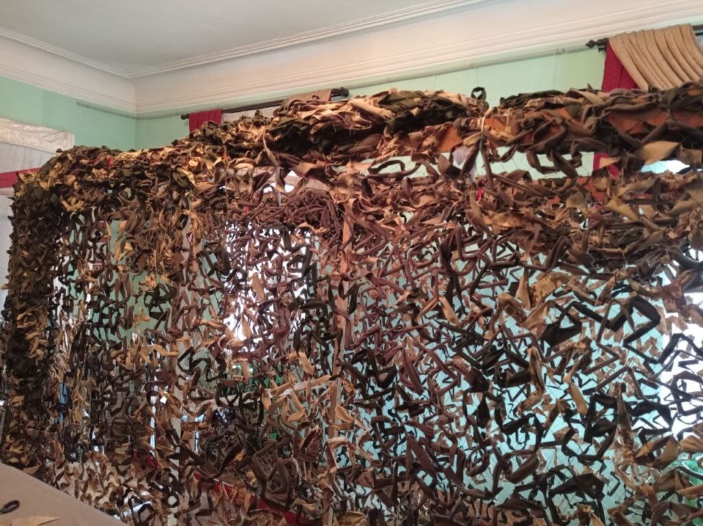 Працівники Кам’янського заповідника продовжують паралельно із основною культурною роботою виконувати різні волонтерські завдання. Зокрема, працівники плетуть маскувальні сітки. Такі нові сітки для наших захисників нещодавно були завершені плестись. Одна з них вирушить на Харківський напрямок, до розвідників.