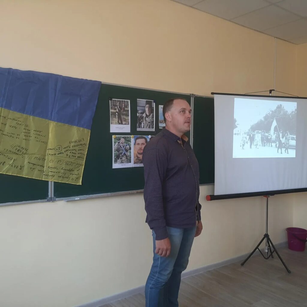 Дітям були розказані історії життя наших краян, які в різні часи боролись проти російського окупанта. Зокрема, діти почули біографічну стежку учасника російського-української війни 2014-16 рр. Віталія Кулініченка. Окрім своєї військової звитяги, пан Віталій прославивися тим, що у ніч на 01 травня 1990 р., разом зі своїми студентськими друзями, він таємно почепив державний , ще в ті часи радянської окупації заборонений, синьо-жовтий стяг.