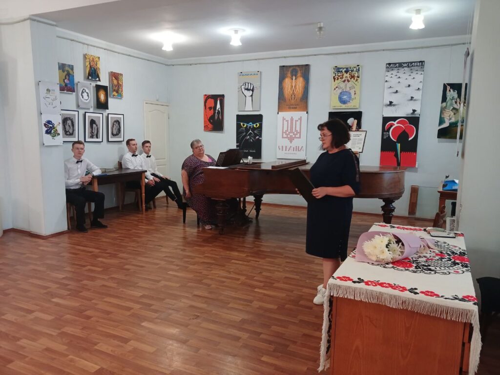 21 серпні 2024 року презентація виставкового проєкту «Щоденники війни» відбулася в картинній галереї Кам’янського ДІКЗ. Молоді організатори виставки хотіли показати, що як у нелегкі воєнні роки люди об’єднуються, так факультет дизайну об’єднався з факультетом музичного мистецтва. Глядачі із захватом зустріли виступ трьох молодих вокалістів, бакалаврів Київського національного університету культури і мистецтв Владислава Литвиненка, Святослава Козака та Андрія Трояна, який добре відомий усім кам’янчанам як учасник багатьох концертів і урочистих заходів. Прозвучали пісні «Сніг на зеленому листі» (музика Олександра Білаша на вірш Михайла Ткача), «Яблунька» (музика Олександра Білаша на вірш Дмитра Павличка) та українська народна пісня «Там, де Ятрань круто в’ється» в обробці Володимира Йориша. Концертмейстер – Ольга Борисівна Жиленко.