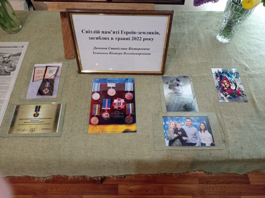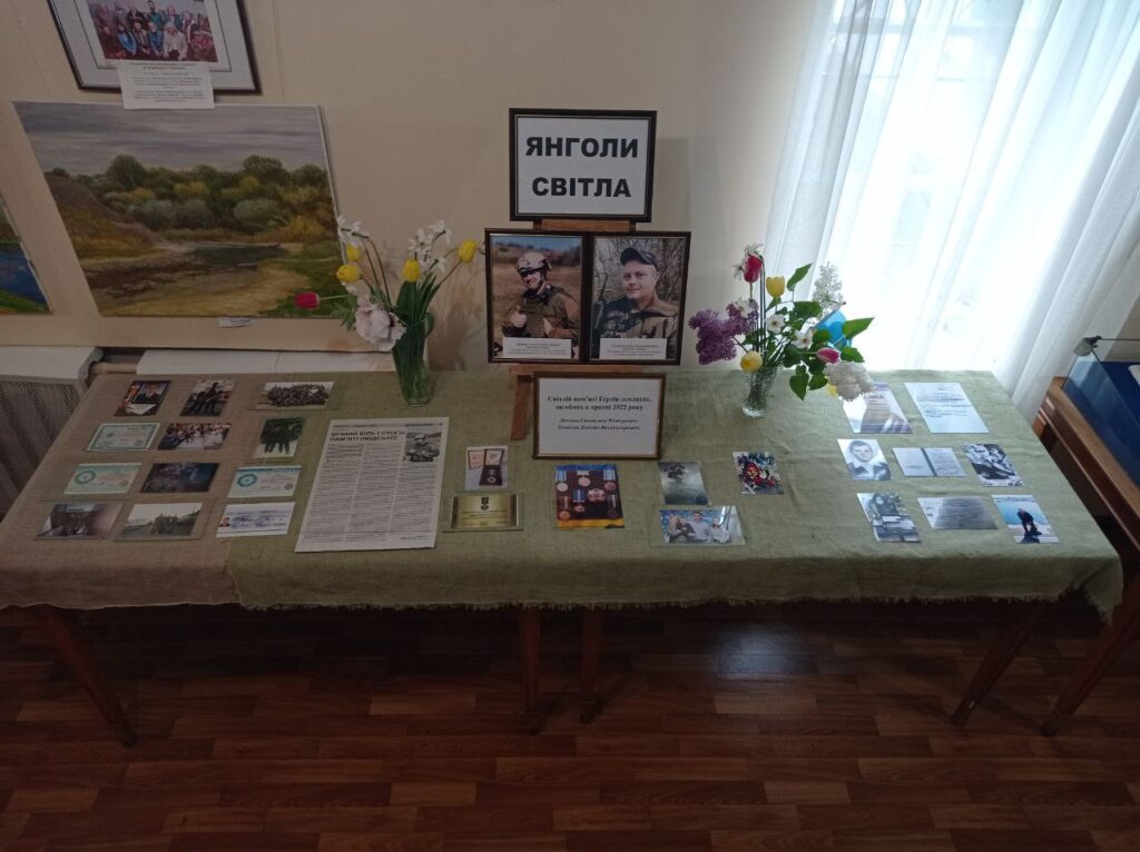 Виставка присвячена захисникам, які загинули в травні 2022 року: Темненку Віктору Володимировичу та Дяченку Станіславу Вікторовичу. Тут представлені світлини, особисті речі, документи, нагороди Героїв, дописи про них.