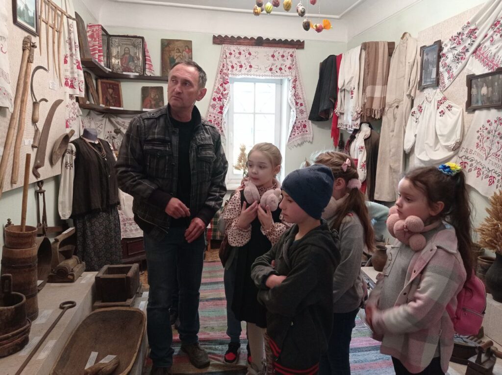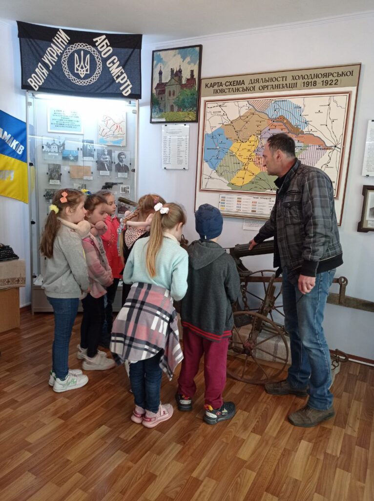4 травня в гості до Кам’янського заповідника завітали учні 2 класу Михайлівського ліцею. Захопливу екскурсію залами історичного музею провів завідувач Юрій Юрійович Ляшко. Діти з цікавістю знайомилися із світом музейних експонатів, живописом і графікою в залах картинної галереї. Не залишили їх байдужими виставки, присвячені нашим загиблим героям- захисникам.